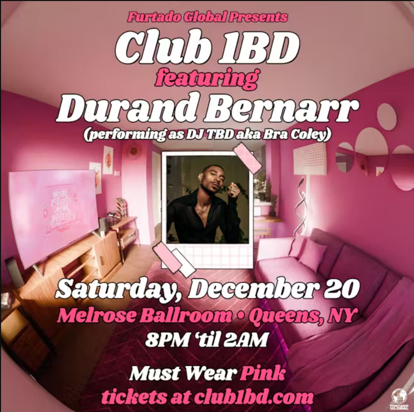 Club 1BD (@club1bd) is throwing a party in Long Island City, NY, with a special DJ set by Durand Bernarr (@durandbernarr) performing under his moniker DJ TBD aka Bra Coley! 💕